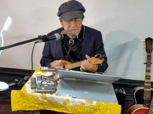 松本亮・角田順とは70年代後半の「ふきのとう」活躍期の重要なメンバーだった。何かと気が合って全国を面白おかしく駆け巡った音楽仲間である。ずっと疎遠だったがここにきて江古田マーキーでそろい踏みと相成った。きっかけは順との新年会。是非今度のマーキーに参加、音を重ねて遊んでみたいと言う。亮とはソロになりたての頃に太鼓や銅鑼を叩いてもらってお世話になった。そんなこんなでマーキーに磁石のように吸い寄せられてこの日の演奏会となった。
